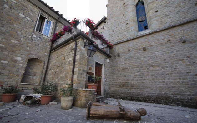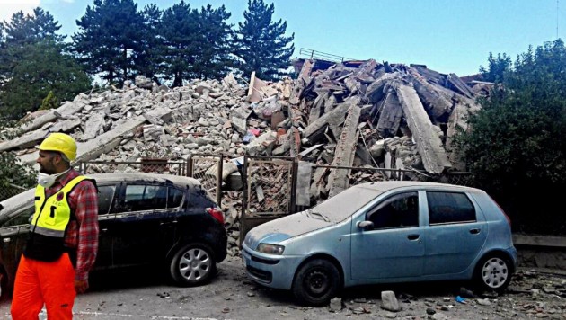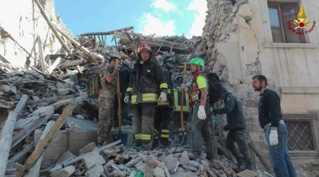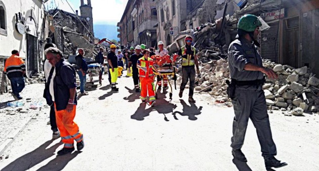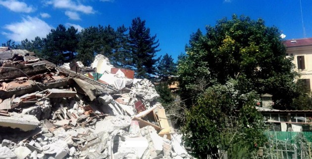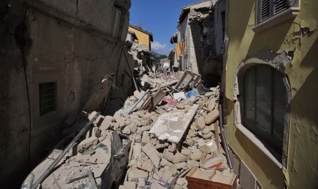 I danni ad Amatrice, in provincia di Rieti, uno dei centri più colpiti dal sisma di magnitudo 6.0 avvenuto alle 3.36 di martedì notte. A metà giornata le vittime accertate nel Comune sono 17.