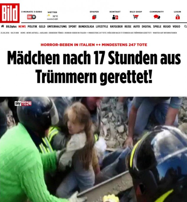 Terremoto Centro Italia. La distruzione, i morti e le storie dei sopravvissuti sulle prime pagine dei giornali internazionali (FOTO)