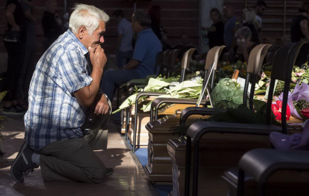 Ci sono 35 bare, una di fianco all’altra, e le due piccole casse bianche di Giulia e Marisol, le bimbe di 9 anni e 18 mesi uccise dal sisma. Giulia ha fatto da scudo con il suo corpo alla sorella Giorgia, estratta viva dalle macerie due giorni fa, che compie 4 anni oggi. Nella palestra comunale di Ascoli Piceno, dove a breve avranno luogo i funerali solenni per le vittime di Arquata del Tronto, rabbia e disperazione tra i familiari delle vittime raccolti qui dalle prime ore del mattino per l’ultimo saluto ai loro cari.