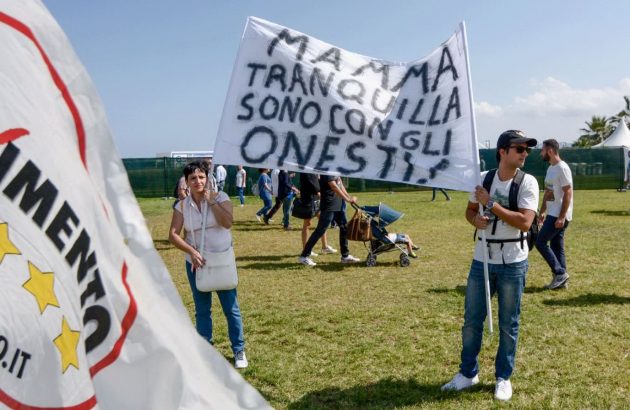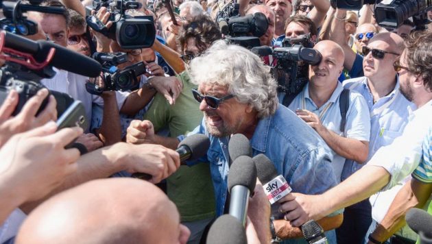 Mentre i leader parla attorniato dalle telecamere, i simpatizzanti del movimento puntano il dito contro i giornalisti. “Vaffanculo”, gridano due attivisti M5S alla folla di cronisti assiepata attorno a Grillo. Altri chiedono che i cronisti vengano cacciati. “Pennivendoli, venduti” sono soltanto alcuni degli insulti. Altri gridano: “Tutti a mare! Buttali a mare”. Poi una volontaria dello staff interviene per placare gli animi.