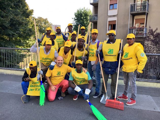 Milano, richiedenti asilo con la scopa in mano per l’iniziativa di Legambiente “Puliamo il mondo”
