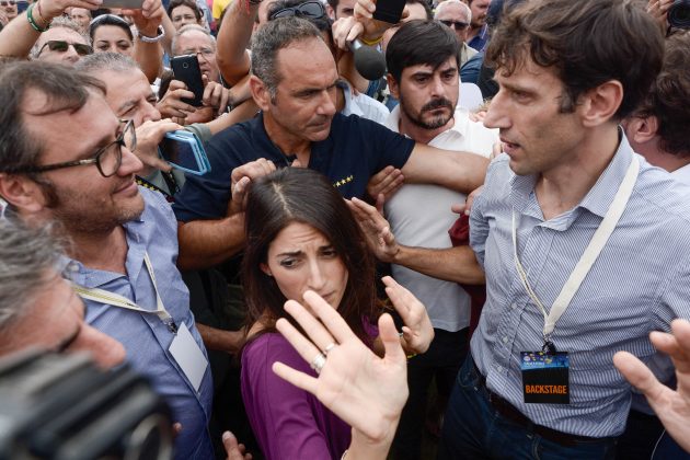 Poche battute, quelle scambiate con i giornalisti, poi la Raggi ha raggiunto il Foro Italico, dove si tiene la kermesse grillina. E dove è stata accolta come una star: circondata da una decina di body guard e da poliziotti, la sindaca è stata a lungo applaudita dai militanti. Accompagnata dalla sicurezza ha fatto un giro tra gli stand al grido di ‘onestà, onestà’. Numerosi gli insulti ai giornalisti presenti che hanno provato ad avvicinare la sindaca: “Venduti“, “buffoni”, “servi“, gli epiteti indirizzati ai rappresentanti della stampa.