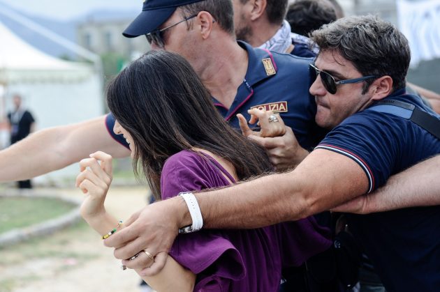 “La mia è una rivoluzione gentile. Quando abbiamo detto No alle Olimpiadi hanno tremato, con il No al referendum vedranno la loro fine”. Virginia Raggi parla dal palco di Italia 5 stelle poco dopo l’inizio del temporale, la folla la ascolta da sotto gli ombrelli e la interrompe solo per il coro “onestà, onestà”. “Io? No, non mollo”, dice la sindaca a chi dalle prime file le grida di resistere. “Abbiamo le mani libere e non dobbiamo dire sì a nessuno, se non ai cittadini”. Domenica 25 settembre è il giorno della prima cittadina di Roma, quella al centro delle polemiche da giorni e che viene accolti dagli abbracci degli attivisti. Osservata speciale di vertici e parlamentari, per il momento continua a essere protetta dalla base. “Perché sono i giornalisti servi della gleba che si inventano le storie”, gridano i militanti ai giornalisti tra gli spintoni. “Siamo noi la sua scorta”, dicono mentre allontanano con la forza i cronisti. Negli scontri durante il giro tra gli stand è rimasta coinvolta anche una giornalista del fattoquotidiano.it.