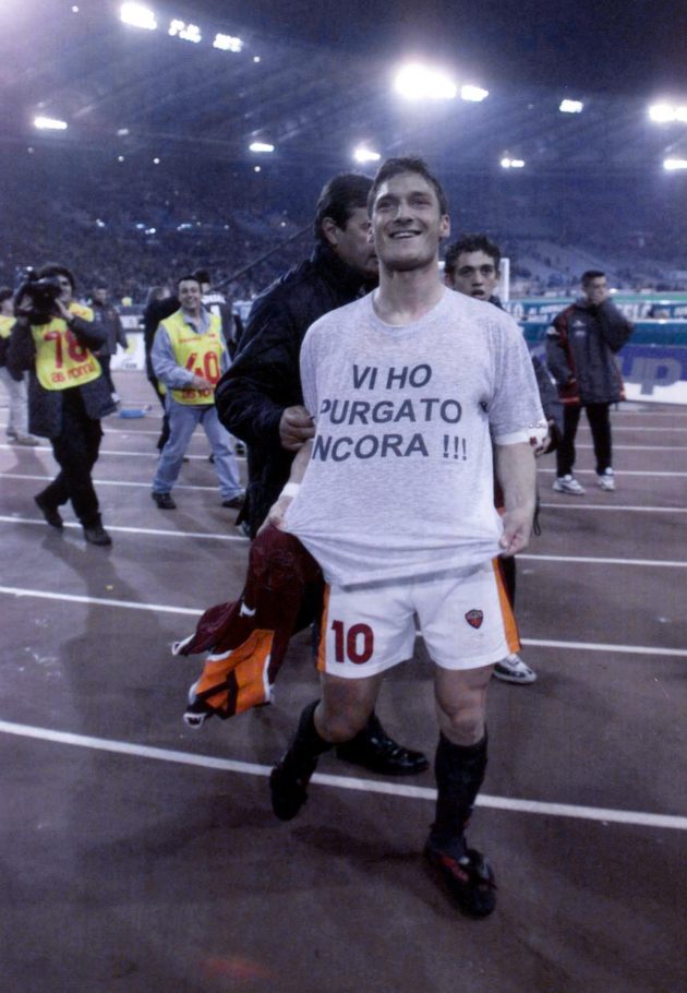 Tante magie, qualche errore (e delusione) – Un uomo di contraddizioni e profonda romanità, non solo verbale, Francesco Totti. Le reti alla Lazio più di quelle di Piola, i giallorossi più del Real Madrid, “dove avrei vinto 3 Champions e 2 Palloni d’Oro”. Il cucchiaio del 5-1 nel derby, ma pure la Coppa Italia persa contro i biancocelesti nel 2013. I 32 gol nel 2006/07 valsi la Scarpa d’oro, ma nella stessa stagione ecco il 7-1 dal Manchester United nei quarti di finale di Champions League. Tocco di prima, spesso spalle alla porta, imbeccate con angoli impossibili visibili solo con gli occhi di un campione, lanci spalle alla porta come volle per primo Fabio Capello. La pennellata di Marassi, la standing ovation del Bernabeu, la doppietta con selfie nel derby. Ma anche i calcioni a Mario Balotelli, Poulsen, la simulazione ai Mondiali in Corea nel 2002. Colpi di testa che non sminuiscono la figura calcistica dell’Ultimo Dieci. Fuori dal campo mai una gaffe, parecchia autoironia, le barzellette, la beneficenza – tanta e spesso silenziosa – e una famiglia protetta. Oltre a una controversa storia extracalcistica, quella delle case affittate al Campidoglio.