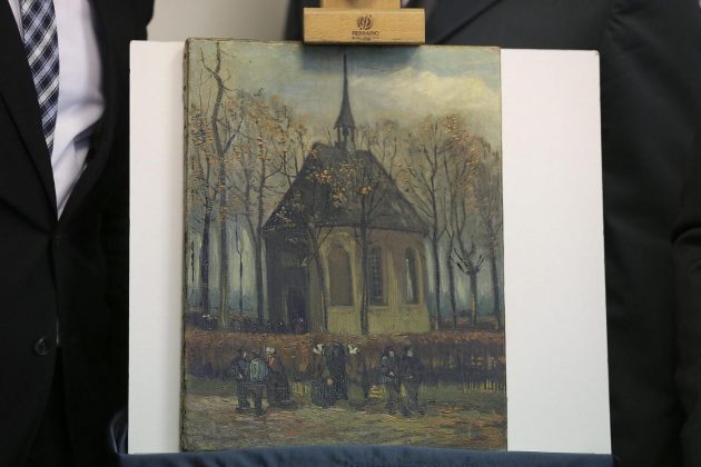I due capolavori risalgono agli esordi della carriera di Van Gogh. “La spiaggia di Scheveningen durante un temporale”, dipinto a olio su tela, fu realizzato dopo che il pittore posizionò il suo cavalletto all’aria aperta sul litorale della località nei pressi de L’Aja. Secondo quanto tramandato, si trattava di una giornata particolarmente ventosa, che trascinò i granelli di sabbia della spiaggia nella vernice applicata sulla tela e al cui interno rimasero attaccati. Il quadro descrive le onde agitate del mare, il cielo pieno di nuvole e le bandiere mosse dal vento. “Una congregazione lascia la chiesa riformata di Nuenen” è del 1884 ed è anche questo dipinto a olio su tela.