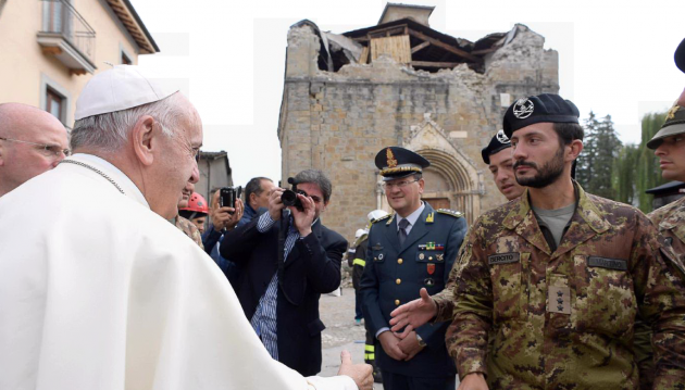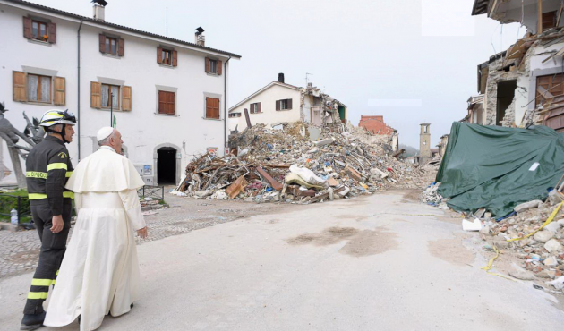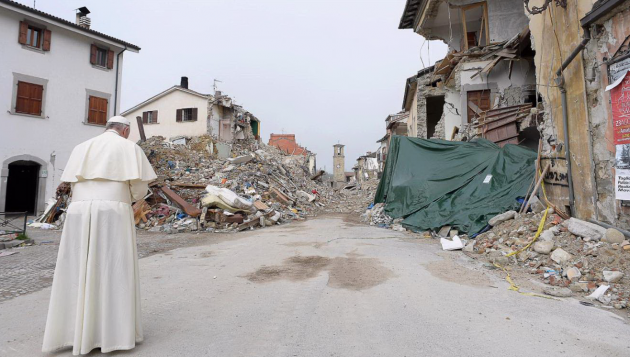 #Amatrice, #PapaFrancesco prega fra le macerie