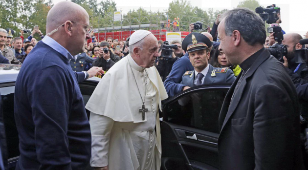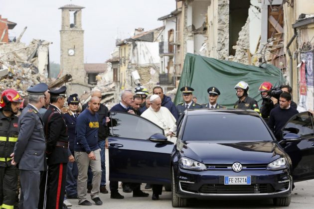 Papa Francesco lo aveva annunciato a pochi giorni dal sisma. E oggi, a poco più di un mese dalla tragedia, ha visitato Amatrice, comune raso al suolo, insieme a quello di Accumuli e Arquata del Tronto, dal violento terremoto del 24 agosto scorso. “Non volevo dare fastidio, per questo ho lasciato passare un po’ di tempo. Sono qui semplicemente per dire che vi sono vicino e prego per voi. Vicinanza e preghiera, questa è la mia offerta a voi”. Sono le parole del Pontefice, tra la gente di Amatrice, nel Lazio settentrionale, dopo aver incontrato gli studenti della scuola del piccolo comune e tenuto una preghiera davanti alle macerie.