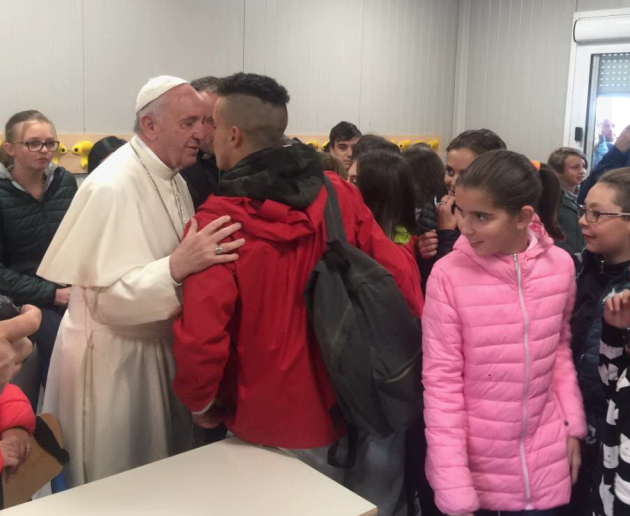 Vi sono vicino e prego per voi #PapaFrancesco in visita ad #Amatrice prima nella scuola poi nella zona rossa pic.twitter.com/e8sXqwhyyF