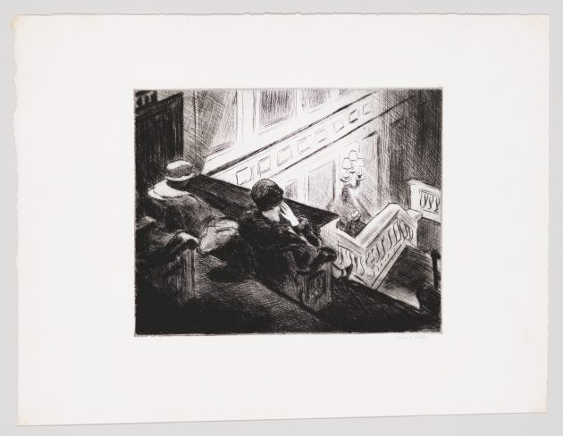 Sembrano attori inconsapevoli, i protagonisti dei quadri di Hopper. Imperturbabili, calati in un presente che è quasi ricostruzione di un “set cinematografico”. Sarà per questo che non è stato solo Wenders ad attingere dall’immaginario di Hopper. Hitchcock, per esempio: la casa di Psycho è ispirata a quella rappresentata in House by the Railroad. Paralizzata nel tempo com’è, cupa eppure illuminata, non si riesce a immaginare abitazione più perfetta per il ruolo. E ancora, Lynch: la provincia americana hopperiana, i protagonisti (e gli spettatori) disorientati, quel “qualcosa che sta per accadere”, oppure è accaduto, mentre la scena si compie, nella sua immobilità. “Durante le riprese nella San Fernando Valley, un immenso dormitorio, studiai i quadri pieni di solitudini di Hopper. Cercavo tutte le ombre dei destini delle storie”, ha detto Altman. E i fratelli Cohen, Antonioni. E poi il recente Shirley. Visions of Reality (2013) del regista austriaco Gustav Deutsch. Che è un omaggio di quelli in grande stile, una celebrazione in video del pittore amatissimo: “Tredici dipinti di Edward Hopper diventano tredici set, in una sintesi di pittura e cinema, storia personale e storia d’America”. E se non bastasse il cinema, arrivano i “gettoni di presenza” di fotografia, fumetti, merchandising, pubblicità. Nighthawks, 1942, è spunto per campagne stampa di ogni tipologia di prodotto, dal caffè alle borse griffate.