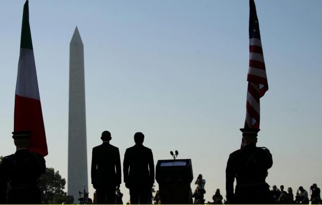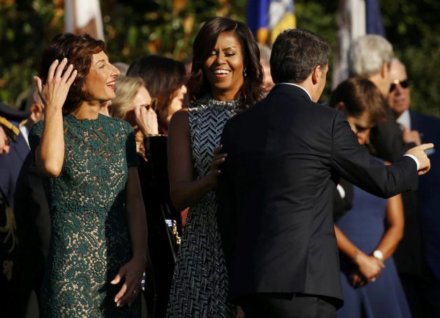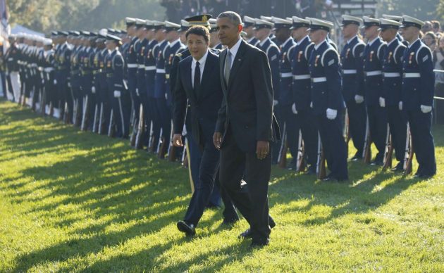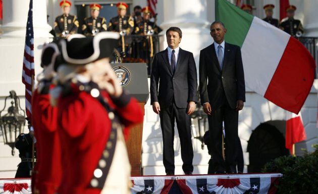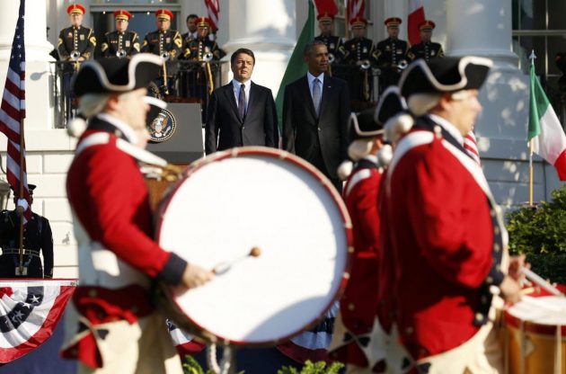 La cena di stato alla Casa Bianca – L’incontro avviene a poche ore dalla cena di Stato alla Casa Bianca. Nella delegazione italiana che accompagna il presidente del Consiglio, oltre alla moglie Agnese, anche i premi Oscar Roberto Benigni e Paolo Sorrentino, il presidente dell’Anac Raffaele Cantone, la campionessa paralimpica Bebe Vio, la presidente del Cern Fabiola Gianotti, la sindaca di Lampedusa Giusi Nicolini, lo stilista Giorgio Armani, la responsabile del reparto architettura e design al Moma di New York, Paola Antonelli.