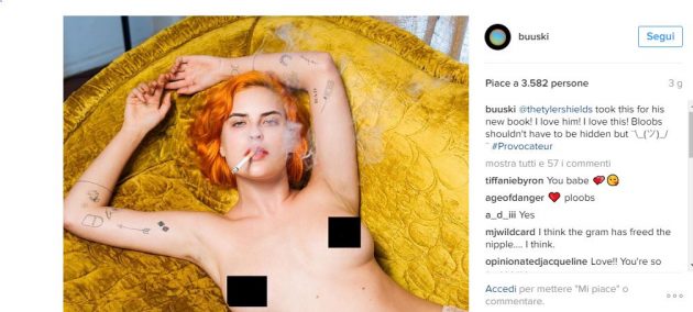 Il movimento Free the Nipple è ormai cosa nota: nato del 2013 per le strade di New York punta ad abbattere la censura del capezzolo femminile in modo ironico, con l’obiettivo ultimo di cancellare alcuni tabù della società americana. Sono in molte ad aver aderito a questo movimento, da Miley Cirus a Emily Ratajkowski. Il nuovo acquisto in questa ‘lotta’ a suon di capezzoli è la figlia di Bruce Willis e Demi Moore: chi è costei? Tallulah Willis, terzogenita 22enne della famosissima coppia, è sempre stata piuttosto lontana da red carpet e simili, mostrando una attitudine, vera o ostentata che sia, piuttosto ribelle. L’ultima provocazione della ragazza si chiama, appunto, Provocateur ed è un libro fotografico di Tyler Shields. Seno nudo, pose sexy, in uno degli scatti Tallulah finge di masturbarsi osservata da un uomo: se sia un modo per far arrabbiare i genitori o un sentito appoggio alla campagna #freethenipple è impossibile saperlo.