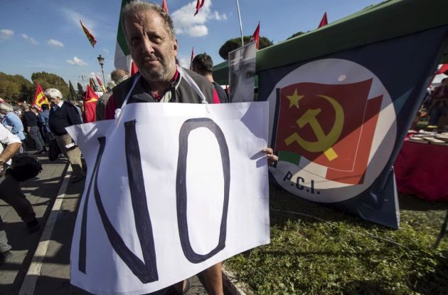“No alla controriforma, No al governo Renzi“. Recita così lo striscione che apre il corteo delle sigle sindacali e politiche che sfilano per le strade di Roma per il No al referendum costituzionale. Partiti da Piazza San Giovanni, i manifestanti sono passati davanti al Colosseo e lungo Via dei Fori Imperiali, per poi raggiungere la meta prefissata di Campo de’ Fiori. “Oggi è il ‘No Renzi Day’ – hanno urlato al megafono alcuni degli organizzatori – Una data che il presidente del Consiglio si dovrà scrivere sul calendario”. Dal camion di testa si susseguono gli interventi che spiegano le motivazioni del “No” al referendum e a difesa “dei diritti dei lavoratori e della democrazia”.