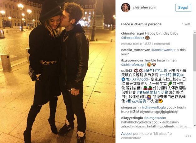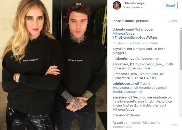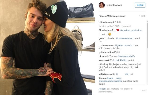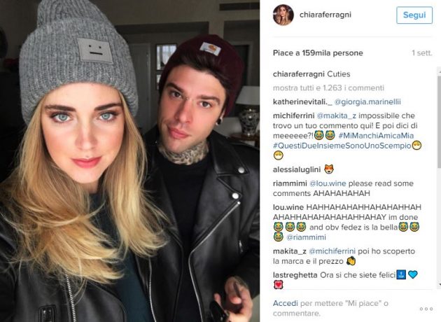 Sull’amore ai tempi dei social si è detto tutto, si sono fatte lunghe discussioni e scritti libri vendutissimi. Quel che fino a oggi mancava (ed era una mancanza di quelle positive, come quando ritiri le analisi del sangue e “mancano” gli asterischi), almeno qui in Italia, era la rappresentazione ‘perfetta’ di una storia social. Ovvero di una relazione raccontata senza riserve su Instagram, con buona pace di paparazzi e giornali scandalistici, disoccupati oggi più che mai. I protagonisti sono Fedez e Chiara Ferragni. Quasi dieci milioni di followers in due (“il grosso” della dote lo porta lei, Chiara, che è seguita da sette milioni di persone), sempre insieme, sempre social: insieme davanti al Duomo di Milano, in posa con una felpa, vicini grazie a Skype, abbracciati con la nonna, ben assortiti come i protagonisti di un redazionale di moda. C’è chi dice sia solo un’operazione di marketing, quel che è certo è che alle migliaia di ragazzini che li seguono non importa granché: si tratti di una strategia per vendere abbigliamento o di vero amore, quel che conta è vedere i loro idoli belli e sorridenti. Contenti loro.