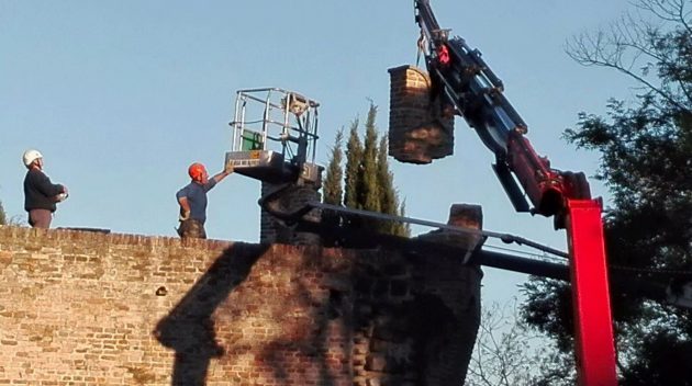 A Tolentino sono stati rimossi i merli pericolanti del torrione di San Catervo
