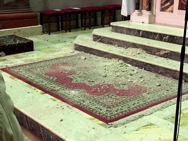I crolli si sono verificati fino a Orte, in provincia di Viterbo. Qui i calcinacci caduti dentro la chiesa di Santa Caterina