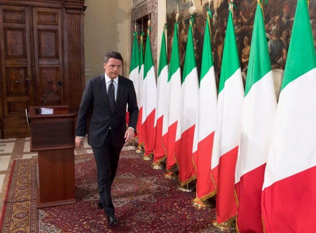 Il presidente del Consiglio Matteo Renzi al termine del punto stampa sul sisma a Palazzo Chigi