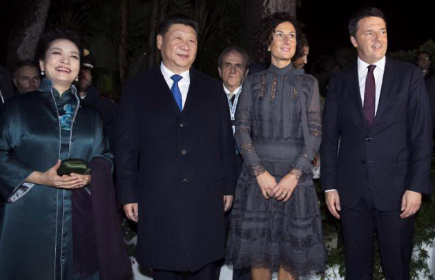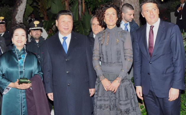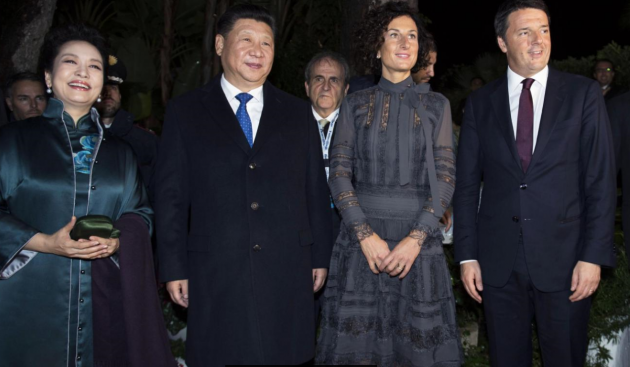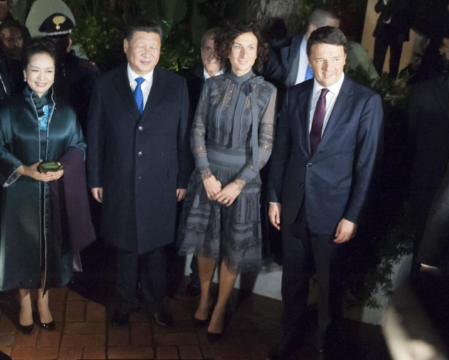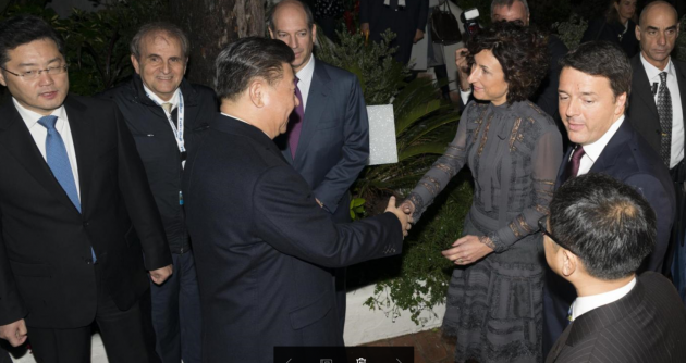 Matteo Renzi ha ricevuto a cena, in occasione del bilaterale Italia-Cina all’interno del Forte Village di Pula in Sardegna, il presidente della Repubblica popolare cinese Xi Jinping. Ad accompagnare i due leader le rispettive mogli, il ministro degli Esteri Paolo Gentiloni, il sottosegretario Claudio De Vincenti e gli omologhi cinesi. Il presidente del Consiglio ha anche regalato al presidente cinese le magliette di Inter, Milan e Cagliari, con tanto di scritta “XI” dietro, dopo che negli ultimi mesi l’imprenditore Jindong, del gruppo Suning, ha acquistato la maggioranza della società nerazzurra e Silvio Berlusconi ha deciso di cedere il proprio club ad una cordata cinese per 740 milioni di euro.