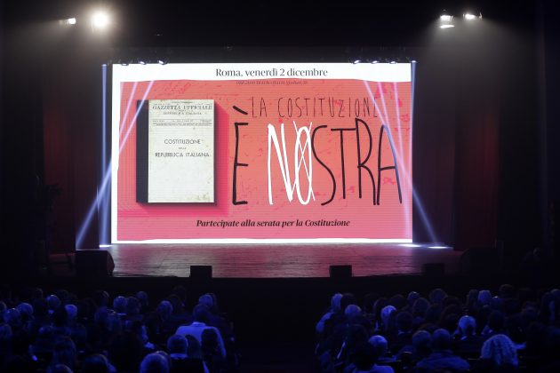 Scrittori, giornalisti, attori, registi, musicisti. Tutti insieme sul palco del teatro Italia, a Roma, nella serata evento del Fatto Quotidiano per dire la loro in difesa della Costituzione contro la riforma voluta dal governo Renzi. “Una situazione paradossale. C’è un premier che non è stato eletto da nessuno, sostenuto da un parlamento incostituzionale che ha modificato la Costituzione. Non ci stupisce: il suo modello è Sergio Marchionne, che ha portato la Fiat all’estero”. In piedi tra il pubblico in platea Maurizio Landini apre così la serie di interventi, prima che dal palco Sabrina Ferilli si rivolga con nostalgia a un’icona della Sinistra con la “esse” maiuscola: “Caro Enrico – è il saluto che in una lettera immaginaria l’attrice romana rivolge a Enrico Berlinguer – il tradimento della Costituzione non viene dai partiti in generale, ma di quello che si definisce democratico e di sinistra“.