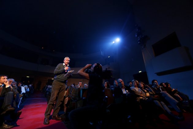 “Sono solo un giornalista – spiega al pubblico Peter Gomez, direttore de IlFattoQuotidiano.it– quando decisi di fare il giornalista non volevo cambiare il mondo. Se avessi voluto cambiare il mondo, avrei fatto un altro mestiere. Il mondo lo volevo raccontare e proprio perché faccio il giornalista ho trovato che fosse giusto dichiararmi. Volevo che chi mi leggeva sapesse come la pensavo. E penso che un Parlamento formato di nominati non potrà svolgere la sua funzione di controllo nei confronti del governo. Questa Italia mi è stata data in eredità da mia figlia che ha 11 anni. Sento il dovere di non lasciargliela peggiore“.