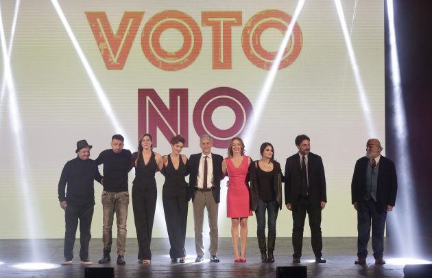 Ad aprire la serata al teatro Italia di Roma erano saliti sul palco Gianna Nannini con il suo brano “America” eseguito in acustico, e i comici Ficarra e Picone: “Siamo venuti a presentare la festa del No perché quelli del Sì non ci hanno voluti – ha detto Ficarra – gli abbiamo detto: ‘ma voi non la fate una festa?’. Chi hanno risposto: ‘Andiamo tutti a casa di De Luca, tutto il Pd tranne la Bindi’”.