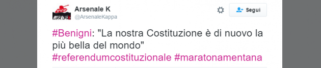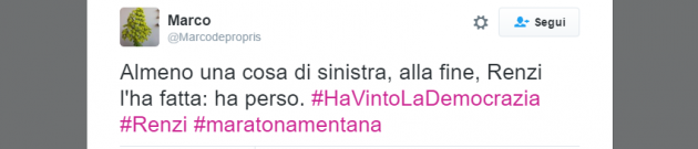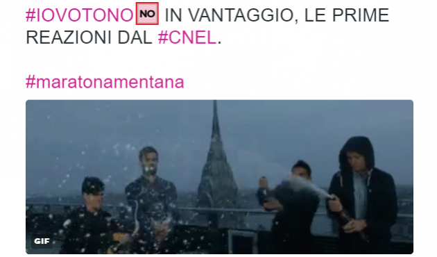 Enrico Mentana si conferma re dei social nelle notti “politiche”: l’hashtag #maratonamentana è stato a lungo il più utilizzato in Italia, prima di #referendumcostituzionale. La mattina del 5 dicembre le tendenze premiano l’esultanza dei sostenitori del No, con #ciaoneMatteo e #HaVintoLaDemocrazia.