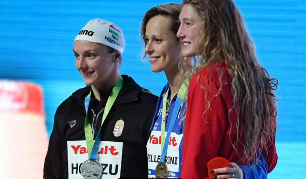Sono quarantasei così le medaglie internazionali tra europei, mondiali e olimpiadi di un’atleta fortissima capace di risalire sullo stesso podio a dieci anni di distanza da Shanghai 2006 (lì battuta dalla cinese Yang Yu) e a quattro mesi dalla delusione del quarto posto delle Olimpiadi di Rio. L’azzurra nei 200 stile libero batte in rimonta l’ungherese Katinka Hosszu, accreditata alla vigilia del primo crono mondiale (1’52″08), che chiude seconda in 1’52″28, dopo esser stata sotto il record del mondo per 150 metri. Poi il ritorno sontuoso della Pellegrini che chiude in 28″12 contro i 29″24 dell’italiana. Terza la giovanissima canadese Taylor Ruck, classe 2000, che chiude in 1’52″50. “Battere una come Hosszu (tre ori ed un argento a Rio, ndr) è sempre difficile e stimolante. L’avevamo preparata così con il mio allenatore ed è riuscita una gara perfetta. Questa medaglia è il frutto del sacrificio e della voglia di non mollare mai che fanno parte del mio dna anche a 28 anni”.