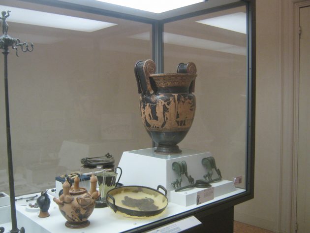 Ne sono testimonianza i monumentali vasi figurati realizzati nel V secolo a.C. nelle officine ceramiche ateniesi, veri e propri capolavori che giungevano a Spina insieme a un universo di miti, credenze e religiosità. Autentici capolavori che costituiscono oggi, qui, nel Museo di Ferrara, la più importante raccolta di quel periodo esistente al mondo. Materiali straordinari di per sé ma che l’allestimento esalta. Sempre con i pannelli e le didascalie.