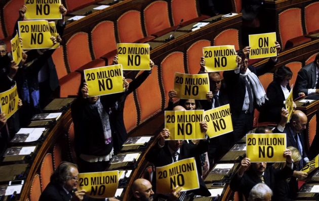 Ogni mattina un parlamentare grillino sa che dovrà essere più veloce del commesso per esibire un cartello in Aula. Ogni giorno un commesso sa che dovrà essere più veloce di un grillino per strappargli via un cartello dalle mani