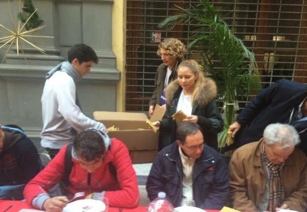 Questo cosa vuol dire? Che al pranzo di Natale che ogni anno viene offerto dall’Associazione Amici della Galleria a barboni e senzatetto, si siedono anche persone di ogni tipo che all’improvviso hanno difficoltà a mettere insieme pranzo e cena.
