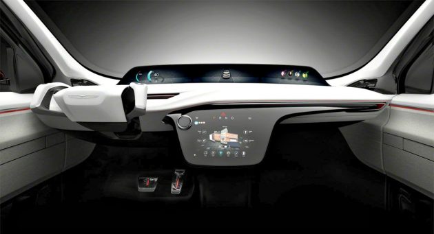 Al posto del volante c’è una cloche, mentre il sistema infotelematico si basa su due grossi schermi Amoled: il loro software è stato sviluppato in collaborazione con i tecnici di Panasonic Automotive Advanced Engineering e prevede anche il riconoscimento facciale dei passeggeri con configurazione automatica dei parametri di bordo, servizi cloud e uno store dedicato alle applicazioni aggiuntive, come quello per il controllo della domotica. Addio alla chiave di avviamento grazie al riconoscimento vocale biometrico, mentre molte funzionalità si controllano mediante comandi gestuali.