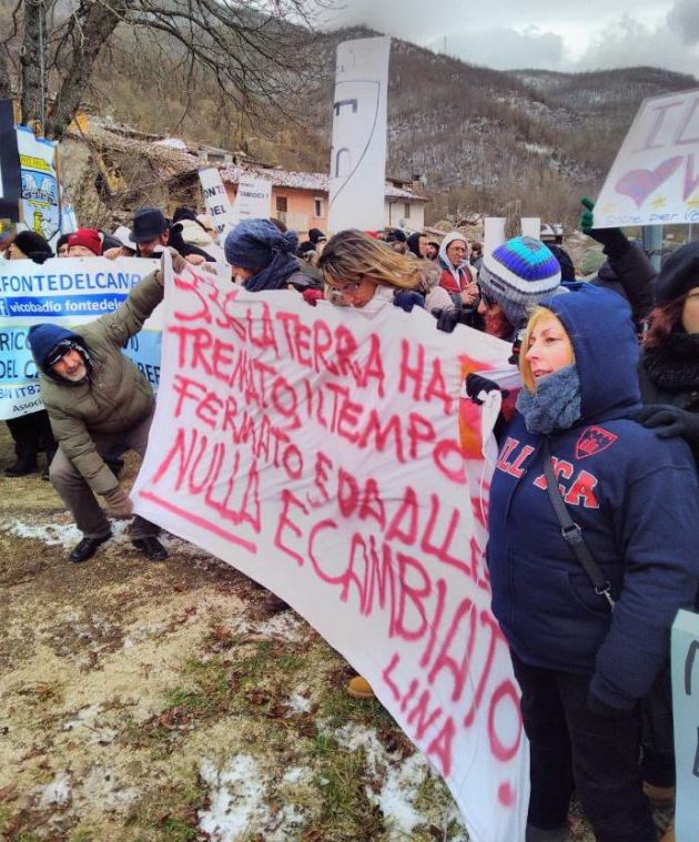 “Qui da quando è stato smontato il campo della Protezione civile è tutto fermo, è diventato un territorio fantasma”. Circa 400 persone sono scese per le strade di Grisciano, una delle 17 frazioni di Accumoli, per denunciare come a più di quattro mesi di distanza dal terremoto del 24 agosto scorso, che ha provocato quasi 300 vittime e distrutto molti borghi del Centro Italia, la situazione non è cambiata. La zona della provincia di Rieti è una delle più colpite e i manifestanti, residenti ma anche abitanti dei vicini comuni marchigiani, hanno protestato contro una gestione del post-sisma insoddisfacente.