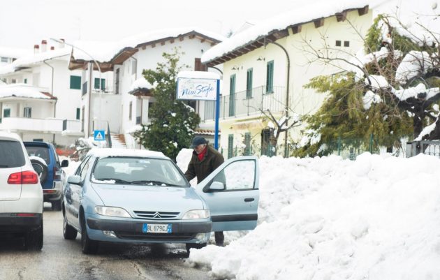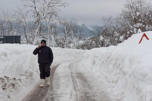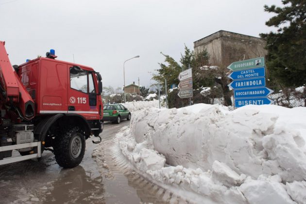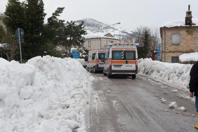 Il viaggio dei soccorritori comincia verso le 18 di ieri, quando l’allarme lanciato da Giampiero Parete, uno dei due sopravvissuti, è arrivato nelle centrali operative. “C’è un hotel completamente isolato in una frazione di Penne“, è stata la prima comunicazione. Le colonne si sono mosse dall’Aquila e da Pescara, ma subito ci si è resi conto che salire i tornanti che da Penne portano nel cuore del Gran Sasso, sarebbe stata un’impresa. Da Penne all’hotel, infatti, sono meno di 25 chilometri, massimo mezz’ora di macchina in condizioni normali. Ma non oggi: usciti dal paese, ogni 500 metri la neve aumenta di 20 centimetri. Imboccato il bivio per Fivirola, l’ultimo paesino prima dell’hotel, il silenzio è totale, come il manto bianco che avvolge tutto e che raggiunge il metro d’altezza. I mezzi passano a fatica, alcuni con le catene montate a tutte e quattro le gomme, ma passano. Attorno alle 19 le avanguardie già sono in contrada Cupoli, quattro case e un bar dove abitano anche alcuni dei dipendenti dell’albergo: mancano solo undici chilometri al Rigopiano ma la neve raggiunge i due metri e i telefoni cellulari non prendono: i soccorritori parlano tra loro e con le rispettive centrali soltanto via radio.