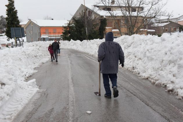 “Mai vista così tanta neve. Mai trovata una situazione così difficile” racconta esausto chi scende. Finalmente i mezzi riescono ad aprirsi il varco giusto, ma gli ultimi 300 metri vanno fatti a piedi. Per forza. Viene così creato un ‘parcheggiò spazzando via centinaia di metri cubi di neve. E, con la neve alle ginocchia, i soccorritori arrivano finalmente all’hotel e, 20 ore dopo aver cominciato, possono finalmente iniziare il loro lavoro. Verso le 15 qualche mezzo comincia a scendere dall’hotel, a breve arriverà il cambio. Dentro ci sono facce distrutte, stralunate, sconvolte. Come è lassù? “Non c’è più niente”.