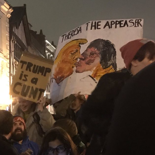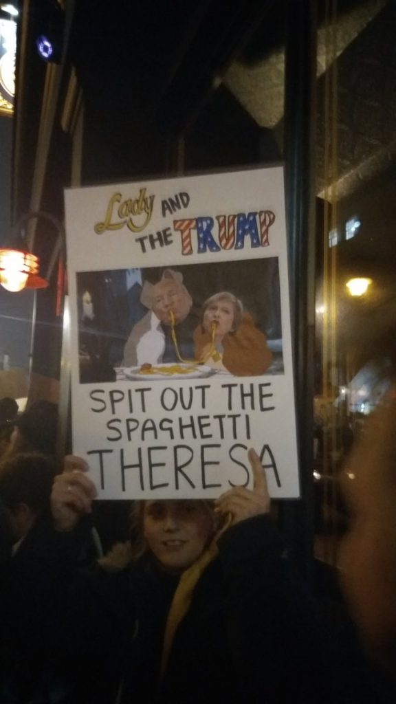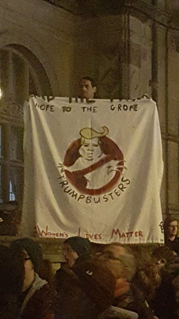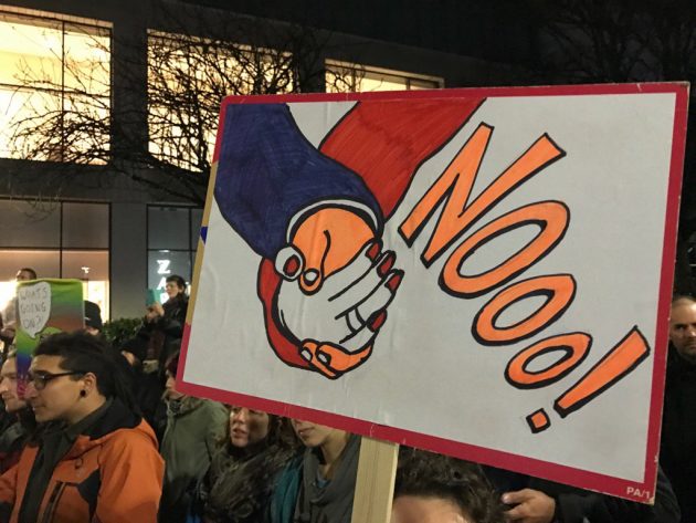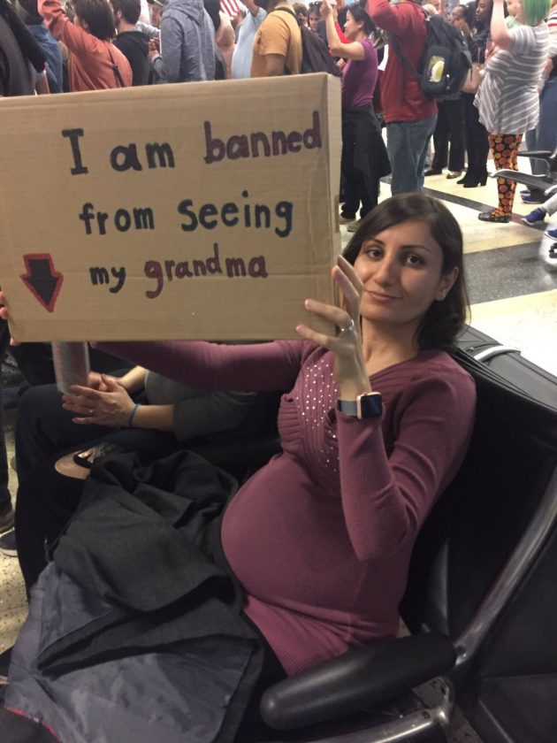 “Sono bandita dal guardare mia nonna“, “il caffè di Portland è yemenita” sono alcune delle scritte che compaiono sui cartelloni dei manifestanti che protestano contro il “bando islamico” di Donald Trump, che vieta l’ingresso negli Usa di rifugiati e cittadini di 7 paesi a maggioranza islamica. Le foto dei cartelloni ironici stanno facendo il giro del web.
