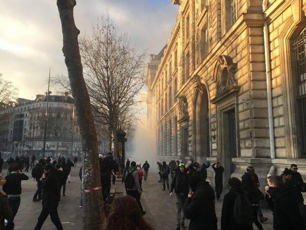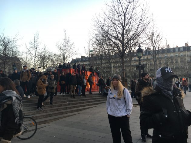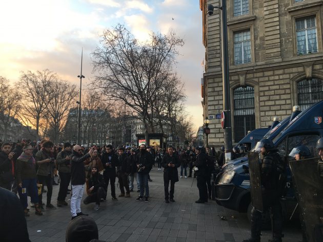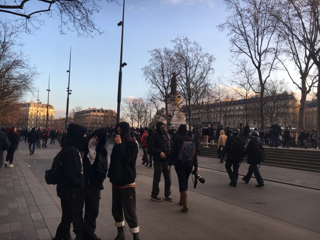 La voce che esce dal microfono è a metà tra un grido e una preghiera: “Il comizio è finito, ora vi prego disperdetevi pacificamente”. Sono le quattro del pomeriggio e a Place de la République a Parigi ci sono tremila persone radunate in sostegno di Théo L., il 22enne vittima di un presunto stupro durante un controllo della polizia ad Aulnay sous-bois. Gli organizzatori della manifestazione, dopo un’ora di interventi in contemporanea ad altre città della Francia, implorano la gente di tornare a casa: “Serve la pace, non lo scontro”. E’ il segnale. Dal gruppo principale si stacca un centinaio di persone: casco in testa, maschere sugli occhi e sciarpe che coprono bocca e naso per proteggersi dai lacrimogeni. Si muovono in blocco verso gli ingressi della piazza blindata, là dove la Gendarmèrie è appostata in assetto antisommossa. “Polizia dappertutto, giustizia da nessuna parte”, gridano. “Non dimentichiamo e non perdoniamo”. Poi in italiano: “Siamo tutti antifascisti”. Lanciano lattine, pietre che staccano da marciapiedi e dall’asfalto della strada e pezzi di legno recuperati da un container abbandonato.