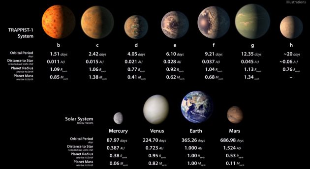 La scoperta è stata possibile grazie alle osservazioni congiunte effettuate da telescopi basati a terra – come il Trappist-South presso l’Osservatorio di La Silla, in Cile, e il Very Large Telescope al Paranal, entrambi dell’European southern observatory (Eso) -, e dallo spazio con il telescopio Spitzer della Nasa. Per scovare i nuovi mondi, gli astronomi hanno utilizzato la cosiddetta tecnica del transito, che permette di catturare ogni minima diminuzione della luce emessa da una stella a causa del passaggio di un pianeta che le orbita intorno. Transito che genera sulla stella piccole eclissi, come se sulla sua superficie il pianeta disegnasse un minuscolo neo. È di pochi giorni fa la notizia della pubblicazione on line di una nuova enciclopedia di pianeti alieni. Un catalogo di 100 nuovi mondi esterni al Sistema solare. Attualmente, secondo la NASA, il totalizzatore di esopianeti, aggiornato al febbraio 2017, conta circa 3500 pianeti confermati e circa 600 sistemi planetari con più mondi Meno di 5000, invece, i possibili candidati osservati dal telescopio spaziale Kepler della Nasa, e ancora da confermare.