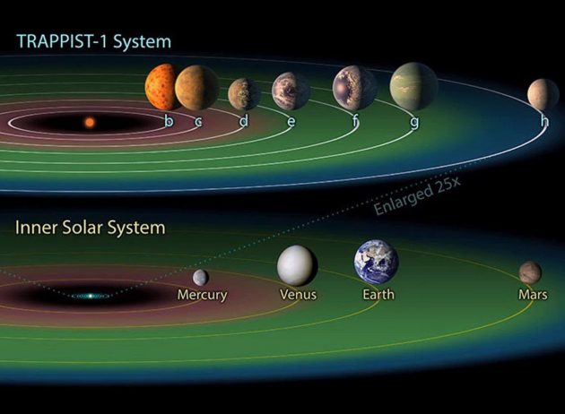 Non saranno infiniti, come scrisse più di quattro secoli fa Giordano Bruno, ma i nuovi mondi affollano sempre più numerosi il cielo stellato. La Nasa ha annunciato la scoperta di un nuovo sistema planetario alieno. Il più grande mai scovato con tanti possibili sosia della Terra, in orbita intorno alla stessa stella. Sette i pianeti extrasolari dalle dimensioni terrestri individuati. Tre di loro, secondo gli scienziati, si trovano nella cosiddetta “zona di abitabilità”. Uno speciale spicchio di spazio alla giusta distanza dalla stella madre. Né troppo vicino, né troppo lontano. Tale, cioè, da consentire l’eventuale presenza in superficie di oceani d’acqua, condizione fondamentale per incubare la vita. I mondi alieni orbitano intorno a una stella vicinissima, in termini astronomici, al Sistema solare. Si chiama Trappist-1 ed è distante appena 39 anni luce, nella costellazione dell’Acquario. L’annuncio della scoperta, coordinata dall’Università belga di Liegi e appena pubblicata su Nature, è stato dato dalla Nasa durante una conferenza stampa convocata al quartier generale di Washington.