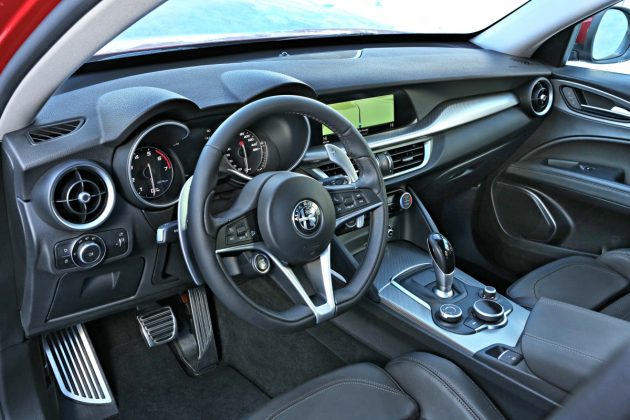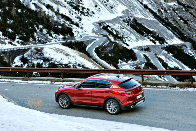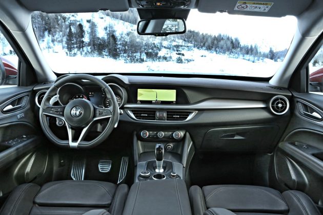 Come detto l’architettura è quella della Giulia (stessa piattaforma, la “Giorgio”), ovvero una berlina sportiva. E il comportamento su strada, dunque, non si discosta poi troppo da quello spartito. Il parco motori è tutto nuovo (e leggero, visto che sono tutti in alluminio) quanto di più potente può offrire ad oggi il Biscione. E tenere a bada tutti quei cavalli sui tornanti alpini del Parco Nazionale dello Stelvio, luogo scelto per il test drive, non è roba da poco. Ci si riesce grazie alla trazione integrale che interviene quando serve (altrimenti si viaggia sempre con quella posteriore), ovvero in condizioni di scarsa aderenza, una taratura sapiente delle sospensioni e ad un assetto più rigido, nonostante la maggiore altezza dal suolo (20,3 cm in totale, 7 in più della Giulia, e il posto di guida è più alto di 19 cm). Il resto lo fanno il cambio automatico a otto marce (non prevista l’opzione del manuale), lo sterzo preciso e un impianto frenante all’altezza, ma anche i sistemi di assistenza alla guida che tuttavia assecondano la filosofia dell’auto: non sono invasivi e lasciano parecchi gradi di libertà.