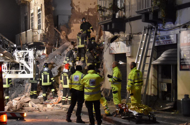 Un crollo nella notte, in seguito a una esplosione di una bombola del gas, di una palazzina di tre piani situata a Catania, all’incrocio tra via Archimede e via Crispi, ha causato la morte di una donna di 85 anni, Agata Strano, che abitava da sola al secondo piano e il ferimento di quattro persone. Tra loro c’è anche una bimba di 10 mesi che attualmente si trova ricoverata nel pronto soccorso pediatrico dell’ospedale Garibaldi Nesima in coma farmacologico e con prognosi riservata. Con lei c’è anche la madre.