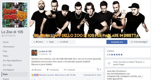 Evidentemente le condizioni del re del trash demenziale erano ormai irrecuperabili, e la notizia della sua morte conferma la veridicità della versione fornita dagli stessi familiari di Di Lernia. Intanto, anche la pagina Facebook dello Zoo ha voluto rilanciare la notizia: “Sembra uno scherzo, uno dei mille fatti dallo Zoo, ma con il cuore spezzato, dobbiamo annunciare che Leone ci ha lasciato questa mattina! Riposa in pace fratello”.