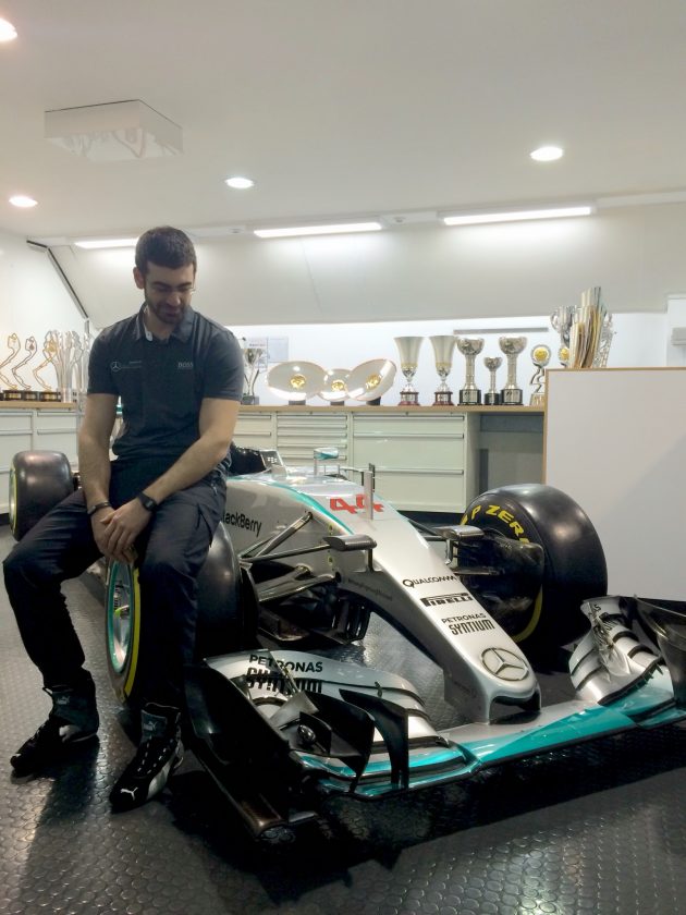 Quel che lo ha stupito, nella sua esperienza di tirocinio di 13 mesi alla Mercedes di Brackley, è stato il rispetto. “Ero considerato a tutti gli effetti un normale impiegato, con bonus di produttività, contributo pensione, assistenza sanitaria, ferie”. Per la prima volta, Daniele si sente “una risorsa su cui investire”. “Qualsiasi cosa succedesse, mai che si alzasse la voce. Inoltre, tutti i colleghi erano sempre pronti a condividere i segreti imparati in parecchi anni di carriera. ‘Più impari e più puoi essere utile al team’, questa era la mentalità”. Un tirocinio retribuito con uno stipendio che gli ha permesso di provvedere ad ogni necessità in una zona costosa come Oxfordshire. “Quando dicevo quanto fossi colpito da questo ambiente mi si rispondeva che era semplicemente un’ambiente professionale dove eravamo tutti professionisti”. E così ecco l’ingegnere siciliano ritrovarsi a chiacchierare in palestra col direttore tecnico o fare la fila in mensa accanto ai piloti di F1. “Mettere le mie mani su una macchina di F1 e possedere il mio decimo di secondo sulla monoposto migliore in griglia è stata un’esperienza fantastica non solo per il lavoro ma anche e soprattutto grazie alle persone”.