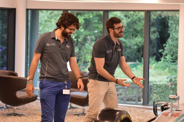 Tornando con la mente agli anni della triennale, infatti, si ricorda quanto allora fosse “angosciato”. “Non sapevo cosa avrei fatto dopo la laurea e non capivo se l’essere fuori corso mi avrebbe precluso opportunità importanti”. Eppure, sono stati proprio gli scambi e le esperienze fatte negli anni “di ritardo” della laurea a permettergli di scoprire cosa avrebbe voluto fare. “Il mio consiglio è di studiare tanto e bene ma non temere di ritardare la laurea di un annetto qualora ci fosse l’opportunità di fare il tirocinio giusto o di lavorare ad un progetto importante in un team studentesco”. Fare esperienze fuori dall’università, vedere come si studia e lavora all’estero, fare un Erasmus lontani da casa. “Sai, se non avessi avuto tutte queste esperienze extracurriculari, avrei avuto meno possibilità di passare il primo step di selezione alla Mercedes”.