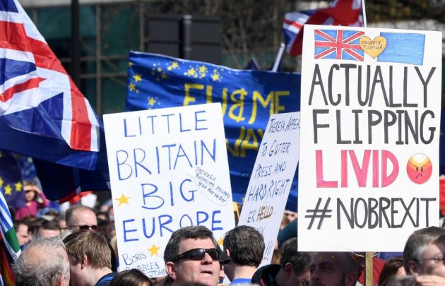 Fra quattro giorni la Gran Bretagna darà il via ai negoziati per l’uscita dalla Ue e Londra migliaia di persone hanno marciato sotto lo slogan “Unite for Europe” per protestare contro la Brexit. Il corteo, colorato da bandiere del Regno Unito e dell’Unione europea, si è concluso davanti alla Camera dei Comuni, con un omaggio alle vittime dell’attentato di mercoledì scorso.