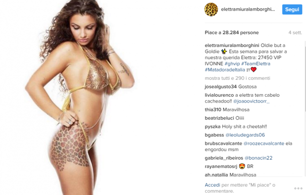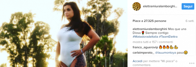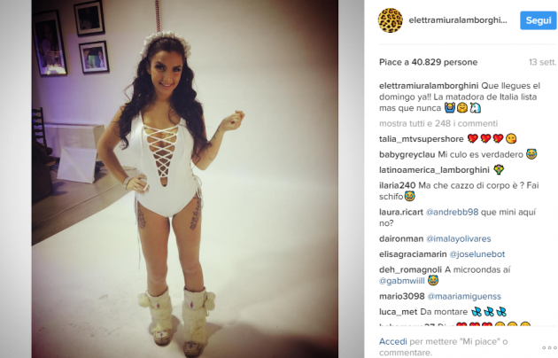 L’Italia da esportazione? Non solo Andrea Bocelli, Laura Pausini e Zucchero, bandiere italiane nel mondo: il Bel Paese viene rappresentato anche dalle gesta di Elettra (Miura) Lamborghini. La giovane ereditiera, figlia di Tonino e nipote del fondatore della casa automobilistica Ferruccio Lamborghini, non si accontenta di un (piccolo, piccolissimo) spazio nel mondo dello showbiz italiano ma si sta facendo conoscere all’estero grazie a partecipazioni nei reality show più disparati.