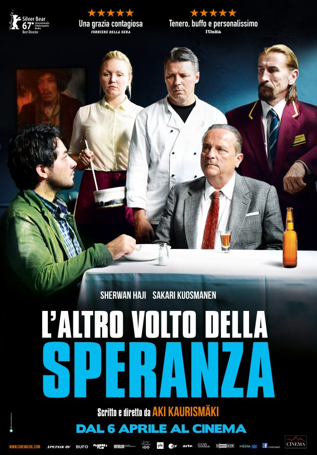 Qui, l’altro volto è quello dei due protagonisti principali: Khaled, un giovane immigrato siriano, in fuga da Aleppo, capitato in Finlandia per caso dopo mille traversie che lo hanno infine portato a sbarcare nel paese da una nave merci; e Vikström, imprenditore di mezza età deciso a piantare moglie e attività per rifarsi una vita, inventandosi ristoratore dopo essere passato dai tavoli da poker. I due si incrociano casualmente per strada all’inizio del film, e Vikström sta per mettere sotto Khaled con la sua auto. Si ritroveranno più tardi nel ristorante del finlandese e lì tenteranno di dare un senso ai loro destini, insieme a qualche altro personaggio abbandonato dalla vita.