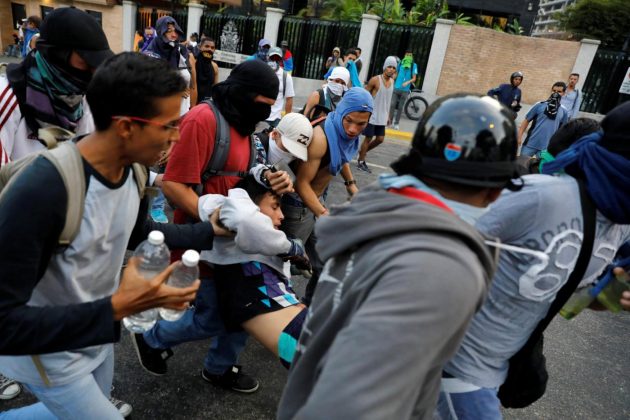 Nei tumulti di ieri ci sono stati oltre 200 feriti. Oggi, la giornata è iniziata con la concentrazione di migliaia di oppositori nella piazza Briòn de Chacaito a Caracas: il corteo si è diretto lungo l’autostrada Francisco Fajardo. Secondo la denuncia di Juan Mejìa e Alfredo Romero della Ong Foro Penal, la polizia ha respinto i manifestanti con lacrimogeni lanciati dagli elicotteri. Sta di fatto che una donna di 87 anni che stava assistendo alle manifestazioni dal terrazzo di casa sua è stata raggiunta da una di queste bombe ed è morta per asfissia. Mentre un bambino di pochi mesi ha riportato, secondo le cronache, un principio di asfissia. A Valencia, secondo Ansa Latina, un giovane studente è stato raggiunto da un proiettile al collo sparato dalla polizia, ed è morto all’istante.