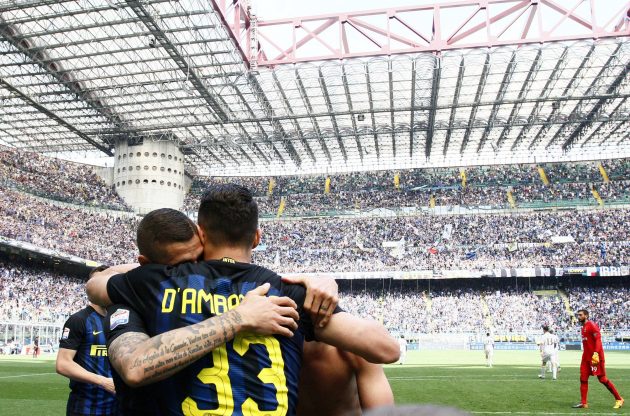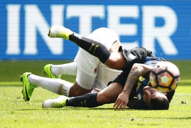 Il Milan spreca, l’Inter no e al 36′ mette in discesa il match con Candreva: l’esterno, innescato da un lancio lungo di Gagliardini, vince il duello con De Sciglio e infila Donnarumma in uscita. E il derby diventa ancora più in salita per il Milan prima dell’intervallo, quando Icardi spezza la maledizione del gol contro i “cugini” depositando in rete da due passi su assist di Perisic, un incubo sulla sinistra per Calabria. Il copione per poco non si ripete a parti invertite in avvio di ripresa, ma il croato spreca l’ottimo assist di Icardi con una conclusione troppo debole e centrale per impensierire Donnarumma. Fra i rossoneri Deulofeu predica nel deserto anche nella ripresa e al 65′ si vede negare il gol con un destro a giro da un super Handanovic. Il derby sembra stregato per il diavolo, ma nel finale tutto cambia. La squadra di Montella torna in partita all’83esimo grazie a una zampata di Romagnoli sul cross di Suso. Nel recupero il neo entrato Biabiany fallisce il colpo del k.o. e al 97′ il Milan trova il pareggio.
