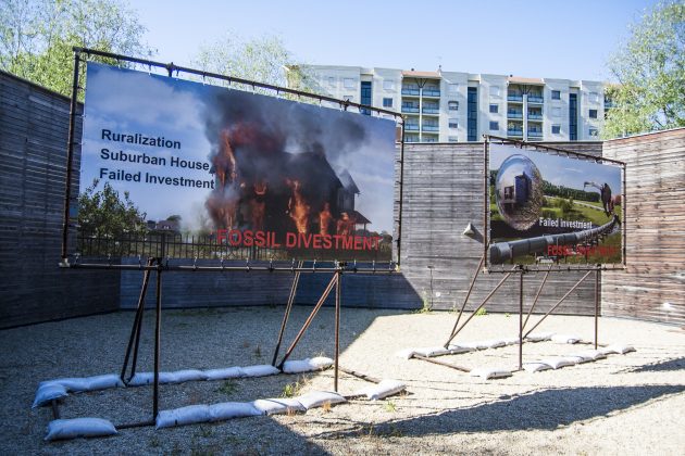 La mostra si completa con altri filmati, sulle lotte di attivisti ambientali contro il fracking, l’estrazione di petrolio o di carbone in tutto il mondo, con manichini emblematici, disegni e stampe. L’impressione finale che se ne ricava è che scavando, scavando, si stia raschiando il fondo del classico barile.