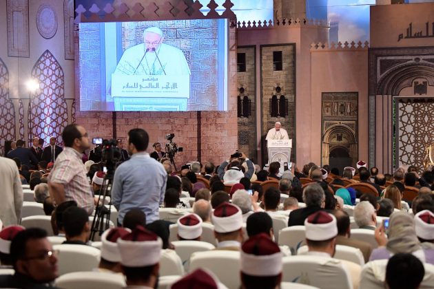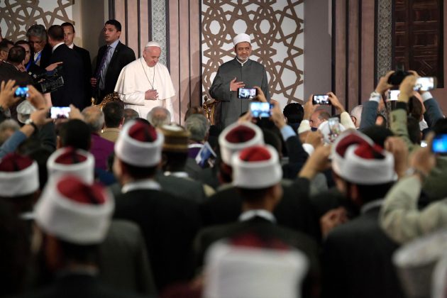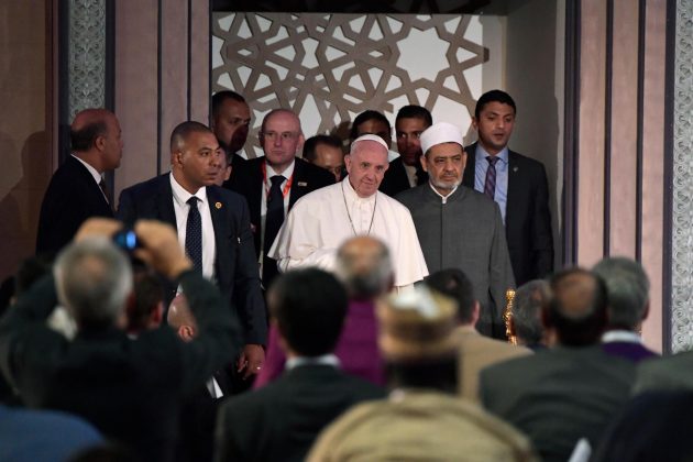 Uscito dal palazzo presidenziale il pontefice si è diretto ad Al Azhar, dove ha invece incontrato il grande imam Shaykh Al Tayeb, dopo averlo abbracciato in Vaticano lo scorso anno. In apertura della conferenza internazionale di pace il grande imam ha invitato i presenti ad osservare un minuto di silenzio per le vittime del terrorismo.