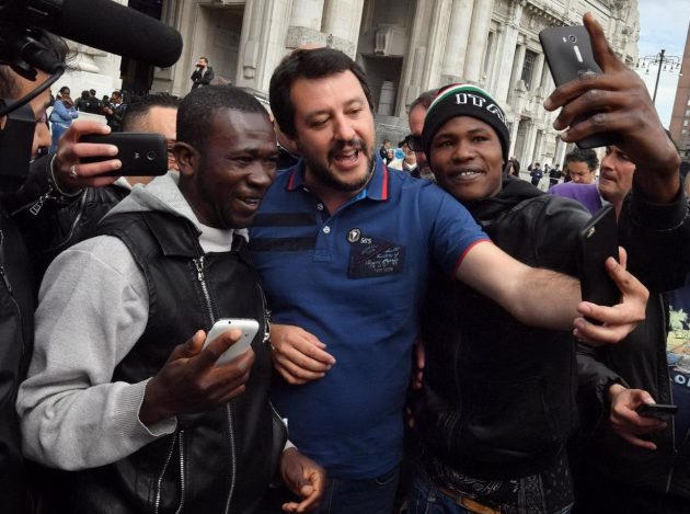 Poco prima delle 16, sulla scena è comparso anche Matteo Salvini, accompagnato da alcune decine di leghisti, non appena saputo del blitz: “Qui ci sono elicotteri, blindati, polizia a cavallo. Potrebbe essere la volta buona per fare un po’ di pulizia su un’area che sembra quarto o quinto mondo”, ha detto il segretario nazionale della Lega Nord, che ha filmato la scena con il telefonino. Tra un selfie con un ammiratore e l’altro, Salvini ha approfittato della scena per sciorinare in diretta Facebook i consueti proclami anti-immigrati: “Tra scippi, furti, rapini, tentativi di violenze sessuali, qua ce n’è da portarne via parecchi, non da fare qualche blitz”. “C’è di tutto e di più qua nei giardinetti – dice quindi il leader del Carroccio inquadrando delle persone di colore – la droga ovviamente la trovi a tutte le ore del giorno e della notte”.